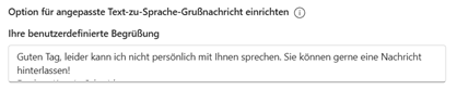 - Option für angepasste Text-zu-Sprache-Grußnachricht einrichten