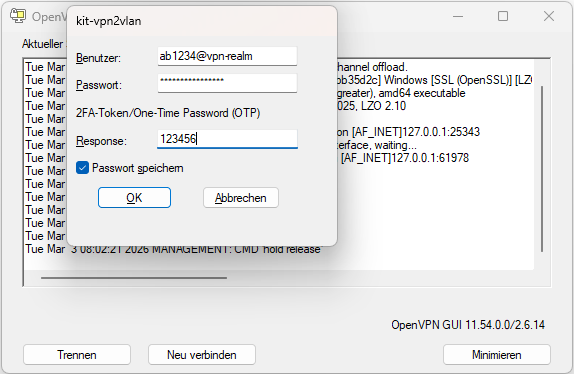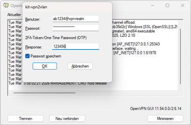 Weitere Informationen: Anleitung zur Nutzung des zweiten Faktors im VPN